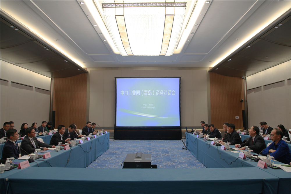 2018年11月14日上午,中白工業(yè)園(青島)商務(wù)對話會在青島國際會議中心舉行。此次會議由青島市商務(wù)局主辦,青島市商務(wù)局局長馬衛(wèi)剛,中白工業(yè)園區(qū)開發(fā)公司CEO胡政等領(lǐng)導(dǎo)及青島各區(qū)市商務(wù)主管部門、上海合作組織實業(yè)委員會企業(yè)的60余人參會。