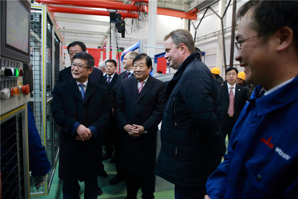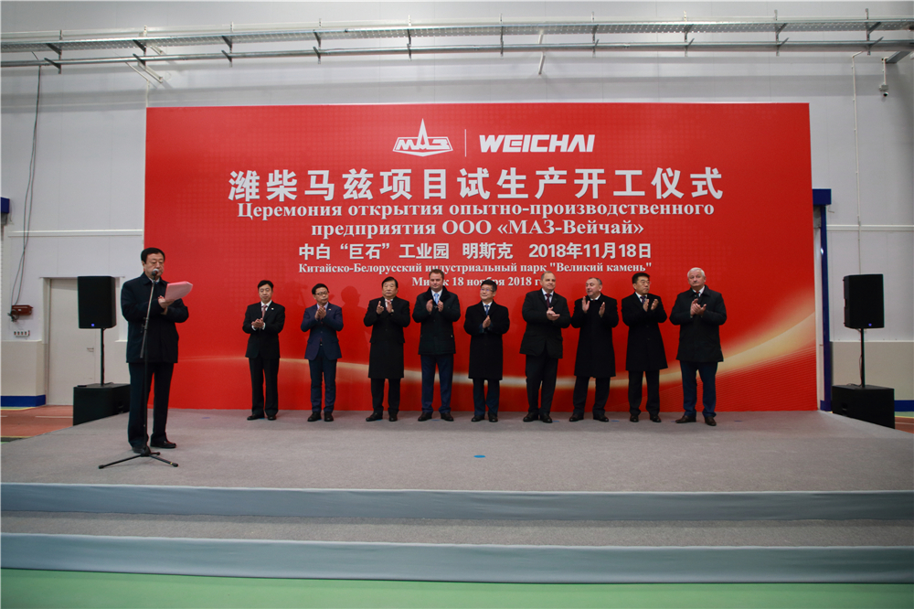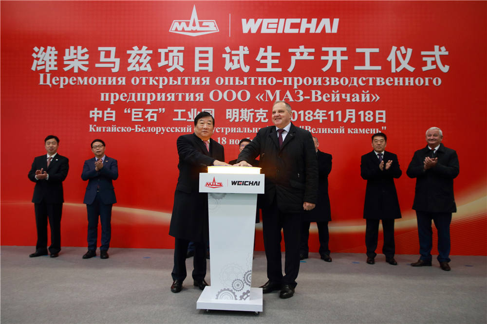 2018年11月18上午,濰柴馬茲項(xiàng)目試生產(chǎn)開工儀式在中白工業(yè)園內(nèi)隆重舉行,白俄羅斯共和國工業(yè)部部長烏秋平,中國駐白俄羅斯特命全權(quán)大使崔啟明,中白工業(yè)園區(qū)管委會(huì)主任亞羅申科,濰柴控股集團(tuán)有限公司董事長譚旭光,馬茲集團(tuán)總經(jīng)理卡特里尼奇,開發(fā)公司總經(jīng)理李海欣等領(lǐng)導(dǎo)出席了本次活動(dòng)。在熱烈的掌聲中,烏秋平和崔啟明共同為濰柴馬茲項(xiàng)目揭牌,隨后,譚旭光與卡特里尼奇共同按下了象征項(xiàng)目投產(chǎn)的啟動(dòng)按鈕。