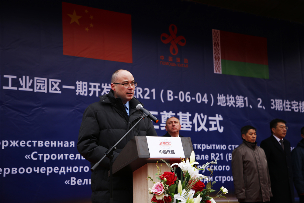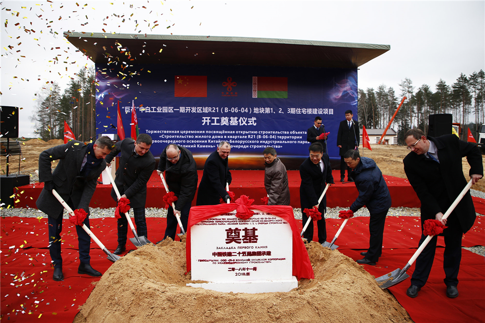 2018年11月21日上午,中國援助白俄羅斯中白工業(yè)園成套住宅樓項目(下稱住宅樓項目)在園區(qū)舉行開工奠基儀式,白俄羅斯共和國經(jīng)濟部副部長馬圖謝維奇,中白工業(yè)園區(qū)管委會主任亞羅申科,中國駐白俄羅斯大使館經(jīng)參處一等秘書陳有進,斯莫列維奇區(qū)副區(qū)長巴拉莫那夫,園區(qū)開發(fā)公司總經(jīng)理李海欣等領(lǐng)導(dǎo)出席本次儀式,并為項目揮鏟奠基。