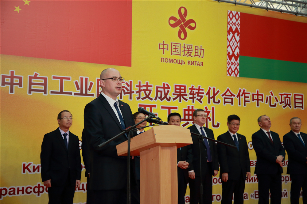 馬圖謝維奇副部長(zhǎng)向出席典禮者致以誠(chéng)摯的問(wèn)候,指出科技成果轉(zhuǎn)化中心的開工是白俄羅斯與中國(guó)深化合作、加強(qiáng)友誼的又一次見證。馬圖謝維奇代表白俄羅斯經(jīng)濟(jì)部,對(duì)中方向白俄羅斯提供技術(shù)和經(jīng)濟(jì)援助表示衷心的感謝,并表示,白俄羅斯經(jīng)濟(jì)部愿繼續(xù)盡最大努力發(fā)展與中國(guó)的合作伙伴關(guān)系,加強(qiáng)兩國(guó)人民之間的友誼。