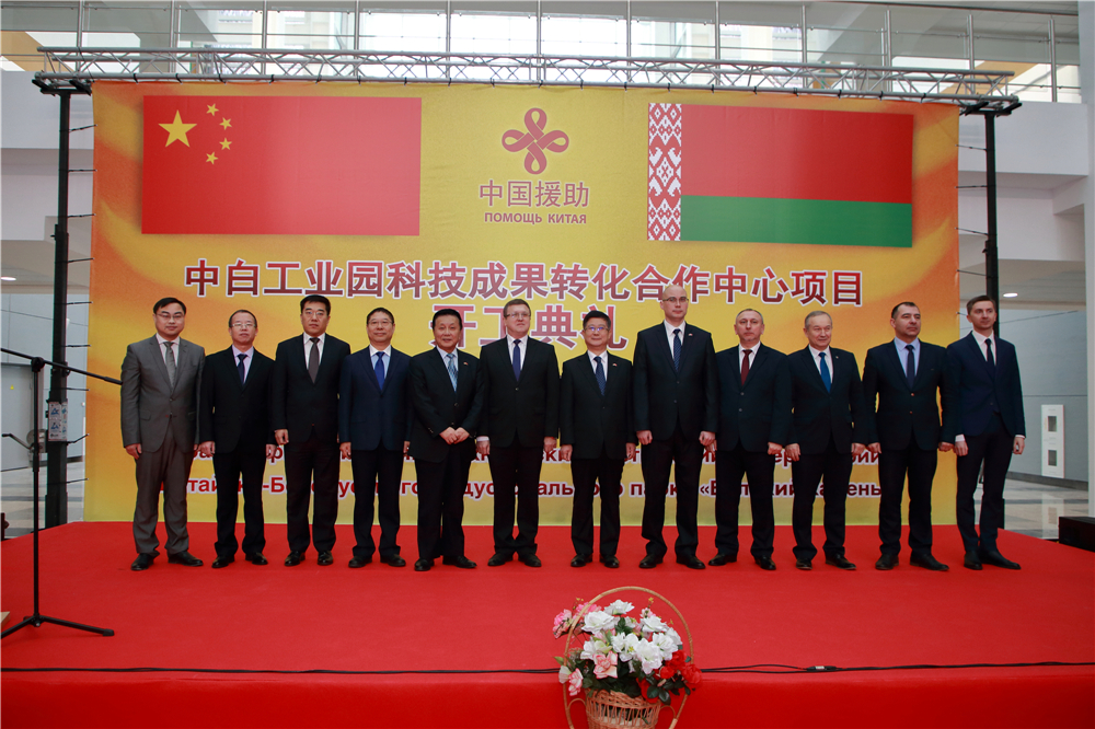 2018年12月18日上午,科技成果轉(zhuǎn)化合作中心大樓開工典禮在中白工業(yè)園舉行。中國(guó)駐白俄羅斯特命全權(quán)大使崔啟明,白俄羅斯國(guó)家科學(xué)院技術(shù)委員會(huì)主席舒米林,白俄羅斯經(jīng)濟(jì)部副部長(zhǎng)馬圖謝維奇,白俄羅斯國(guó)家科學(xué)院第一副主席齊日科,中白工業(yè)園區(qū)管委會(huì)主任亞羅申科,斯莫列維奇區(qū)副區(qū)長(zhǎng)薩斯科維奇,中國(guó)駐白俄羅斯大使館經(jīng)濟(jì)商務(wù)參贊楊修敏,開發(fā)公司CEO胡政,園區(qū)開發(fā)公司總經(jīng)理李海欣、第一副總經(jīng)理基里爾等出席了開工典禮。