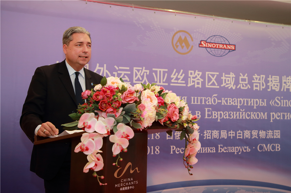 他說,區(qū)域總部的設立體現(xiàn)了招商局集團和中外運股份公司構建海外發(fā)展戰(zhàn)略的重大抉擇,中外運歐亞區(qū)域總部和招商局中白商貿物流股份公司今后將繼續(xù)不斷發(fā)揚駱駝精神,扎根白俄,服務歐亞,依托招商局中白商貿物流園的基礎設施,大力發(fā)展中歐班列、國際海運、合約物流、跨境電商和國際空運四大物流產(chǎn)品線,整合歐亞區(qū)域資源,創(chuàng)新商業(yè)模式,依托海內外客戶合作伙伴的信任和支持,聚焦客戶需求,以最佳的解決方案和服務持續(xù)創(chuàng)造商業(yè)價值和社會價值,將公司建設成為連接中白服務歐亞的具有領先地位的物流綜合服務平臺企業(yè)。