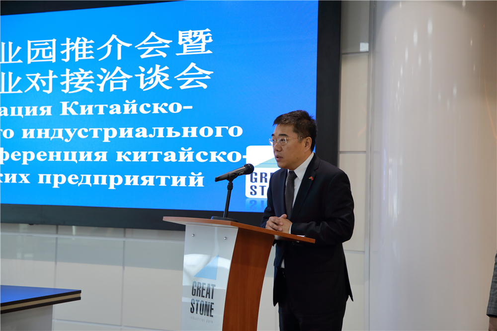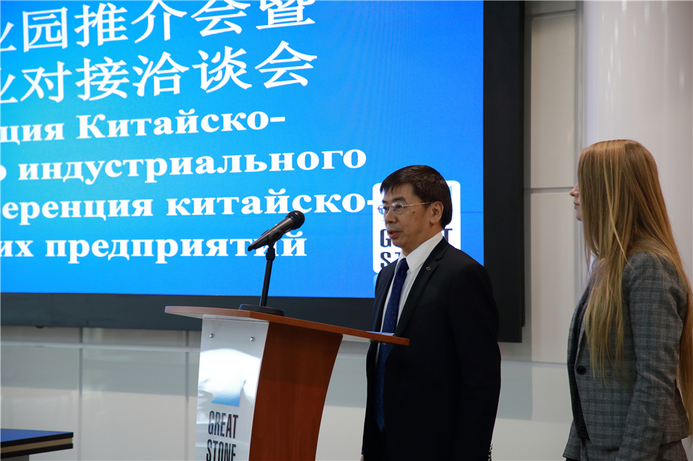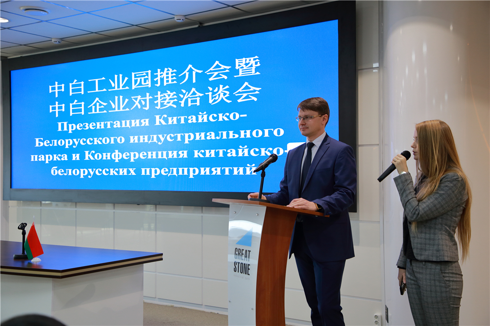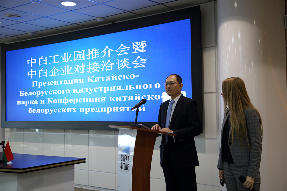 2018年10月22日上午,中白工業(yè)園推介會暨中白企業(yè)對接洽談會在園區(qū)舉行,本次推介會由中國貿(mào)促會和中白工業(yè)園共同舉辦,中國貿(mào)促會副會長盧鵬起,白俄羅斯工商會副主席安德烈,中國駐白俄羅斯大使館經(jīng)濟商務參贊處一秘陳有進,中白工業(yè)園區(qū)管委會主任亞羅申科,開發(fā)公司總經(jīng)理李海欣等領導出席了本次推介會。