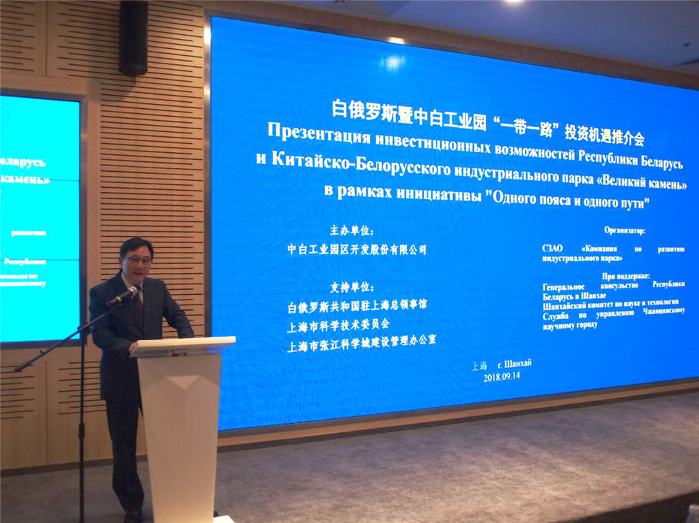 2018年9月14日下午,白俄羅斯暨中白工業(yè)園“一帶一路”投資機遇推介會在上海張江科學(xué)城舉辦,白俄羅斯共和國駐上??傤I(lǐng)事馬采利·瓦列里,上海市科學(xué)技術(shù)委員會秘書長謝文瀾,中白工業(yè)園管委會副主任列肖諾克·伊戈里,上海張江科學(xué)城建設(shè)管理辦公室副主任張翎,中白工業(yè)園區(qū)開發(fā)公司副總經(jīng)理任飛等出席本次推介會。