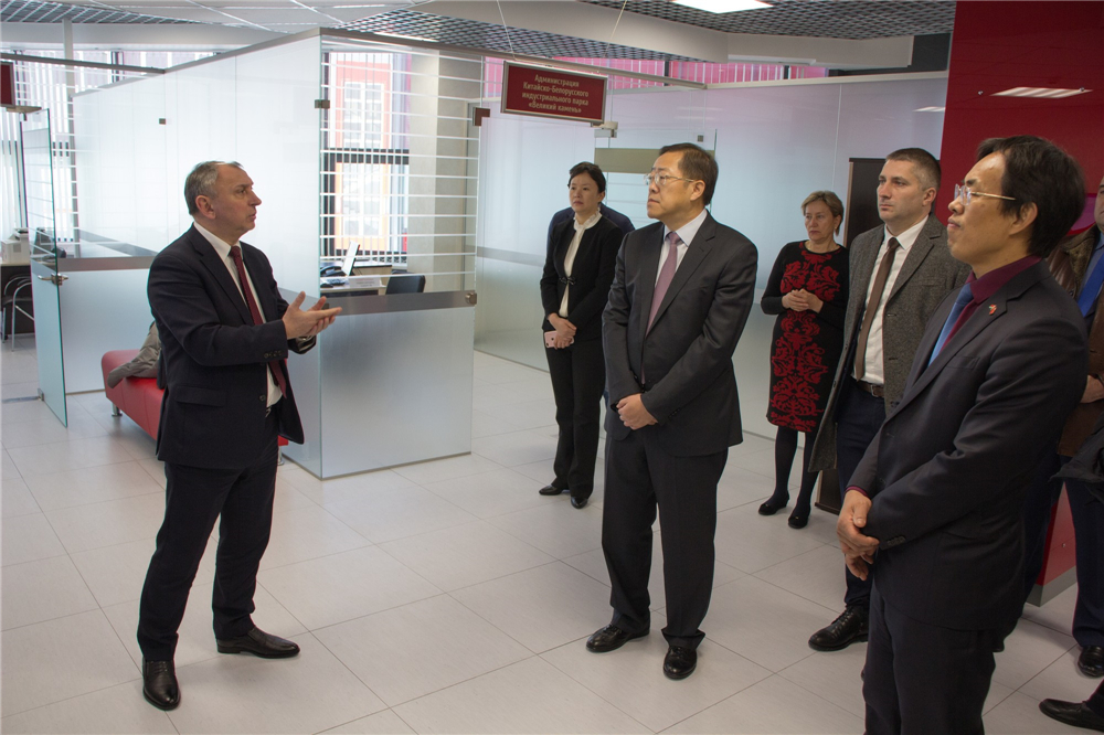 2019年01月23日上午,北京市公安局副局長(zhǎng)潘緒宏考察中白工業(yè)園,園區(qū)管委會(huì)主任亞羅申科,合資公司副總經(jīng)理兼總經(jīng)濟(jì)師徐保民陪同考察。