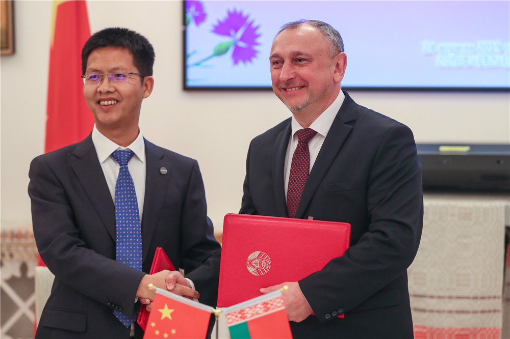 2019年4月24日下午,在白俄羅斯共和國總統(tǒng)盧卡申科到訪北京并參加第二屆“一帶一路”國際合作高峰論壇之際,白俄羅斯共和國駐華大使館舉行中白合作發(fā)展文件簽署儀式。儀式上,兩國政府和企業(yè)代表共簽署了8份合作文件,其中包括3份中白工業(yè)園相關(guān)協(xié)議。