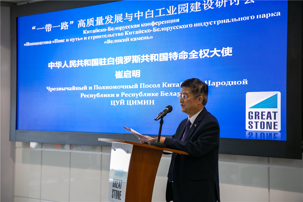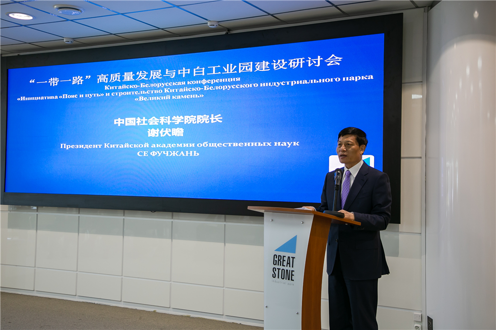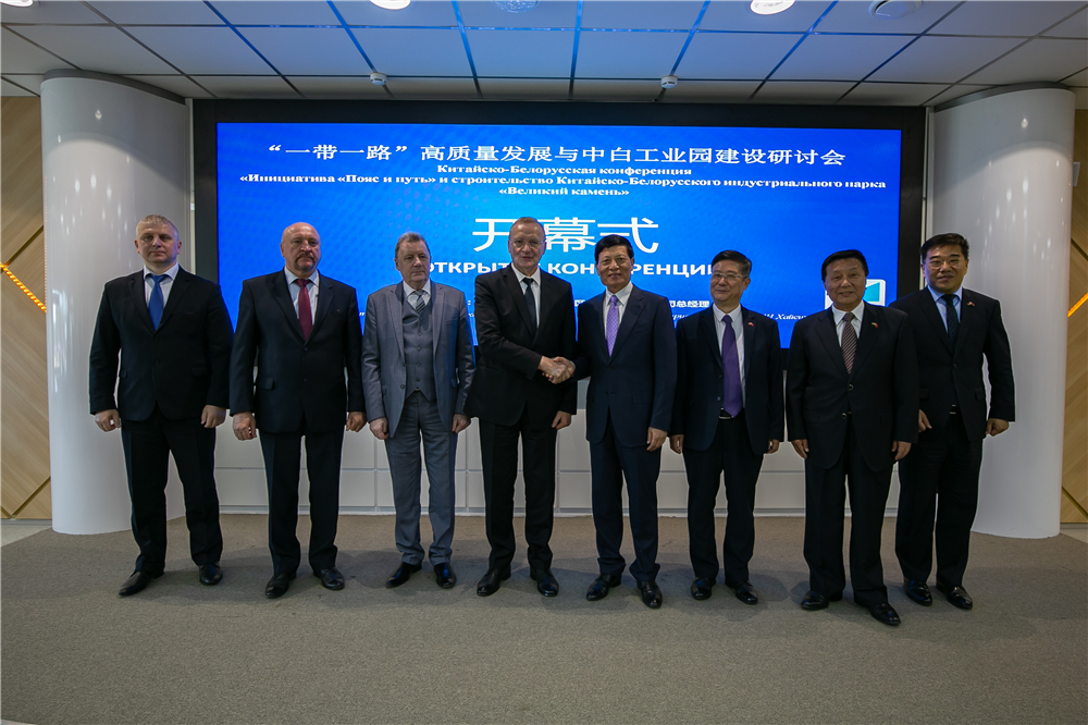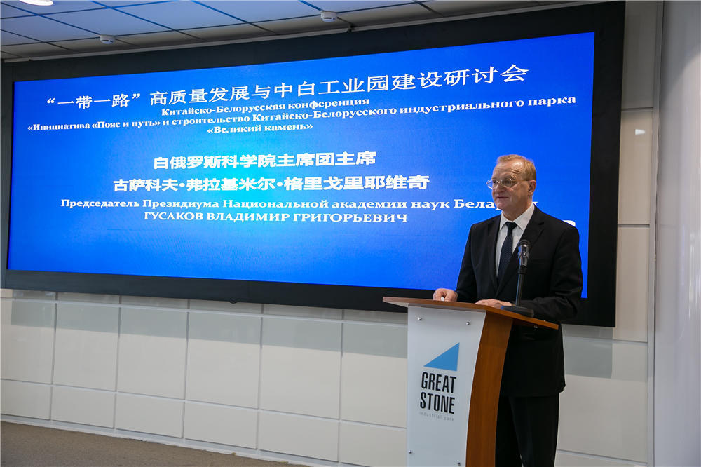2019年5月27日,由中國(guó)社會(huì)科學(xué)院和白俄羅斯科學(xué)院共同主辦的“一帶一路”高質(zhì)量發(fā)展與中白工業(yè)園建設(shè)研討會(huì)在中白工業(yè)園舉行。中國(guó)社會(huì)科學(xué)院院長(zhǎng)謝伏瞻、白俄羅斯科學(xué)院主席團(tuán)主席弗拉基米爾·古薩科夫、中國(guó)駐白俄羅斯特命全權(quán)大使崔啟明、中白工業(yè)園開發(fā)公司CEO胡政等出席開幕式并致辭。會(huì)議由開發(fā)公司總經(jīng)理李海欣主持。