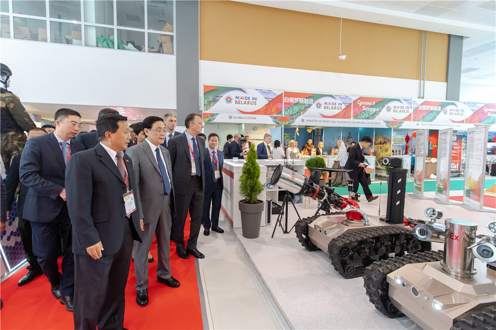 2019年7月2日上午,第十三屆全國(guó)政協(xié)副主席何維考察中白工業(yè)園,并參觀正在舉辦的中白兩國(guó)商品展。白俄羅斯總統(tǒng)辦公廳副主任斯諾普科夫,中國(guó)駐白俄羅斯大使崔啟明,白俄羅斯經(jīng)濟(jì)部部長(zhǎng)克魯托伊,中國(guó)商務(wù)部副部長(zhǎng)錢(qián)克明,園區(qū)管委會(huì)主任亞羅申科,中開(kāi)發(fā)公司CEO胡政,總經(jīng)理李海欣陪同考察。