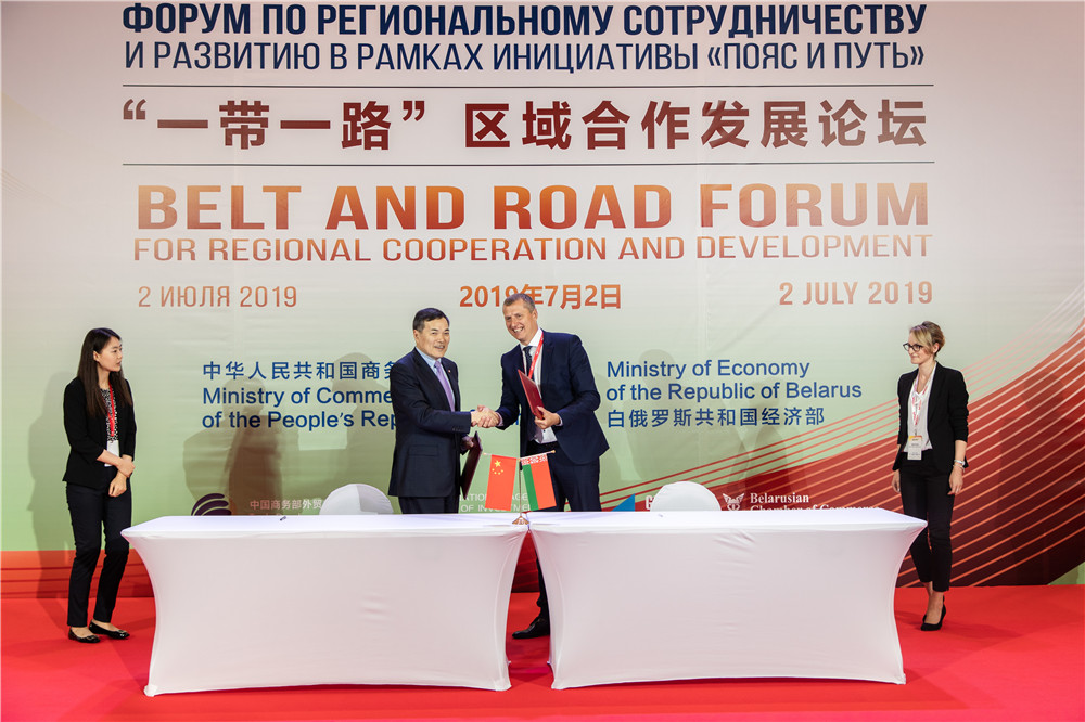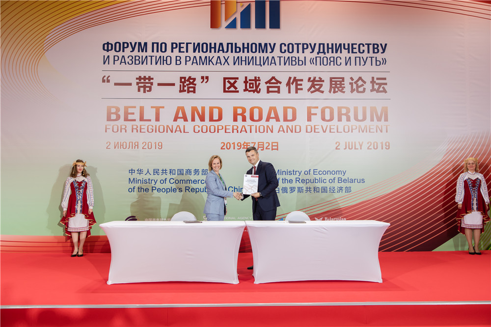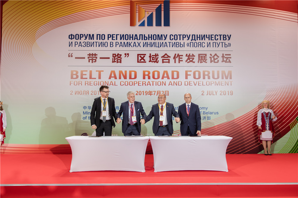 2019年7月2日,“一帶一路”區(qū)域合作發(fā)展論壇在中白工業(yè)園舉辦。在此期間,簽署相關(guān)合作協(xié)議。