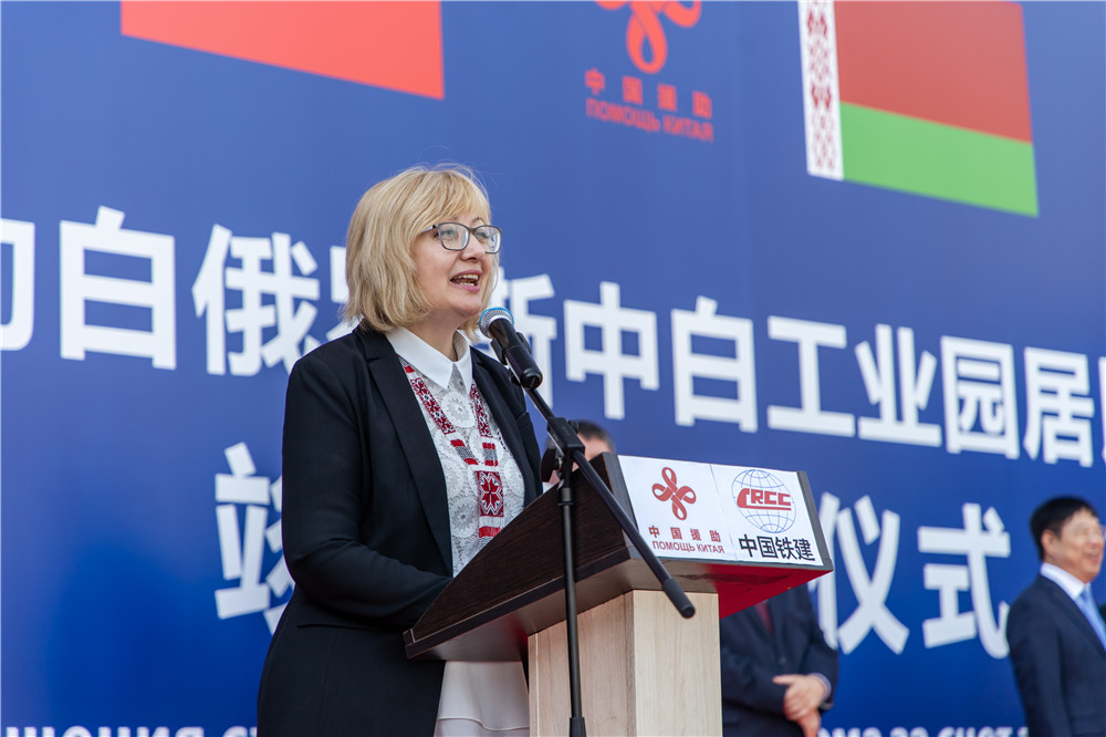葉列娜在致辭中介紹到,中白工業(yè)園堅持綠色、生態(tài)、高科技的發(fā)展方向,不斷優(yōu)化投資環(huán)境和條件,去年園區(qū)居民企業(yè)的直接投資占斯莫列維奇區(qū)總投資的70%,占明斯克州總投資的20%。她強調,園區(qū)的發(fā)展對中白兩國深化經貿合作至關重要,向中國政府對園區(qū)的經濟發(fā)展做出的貢獻表示感謝。