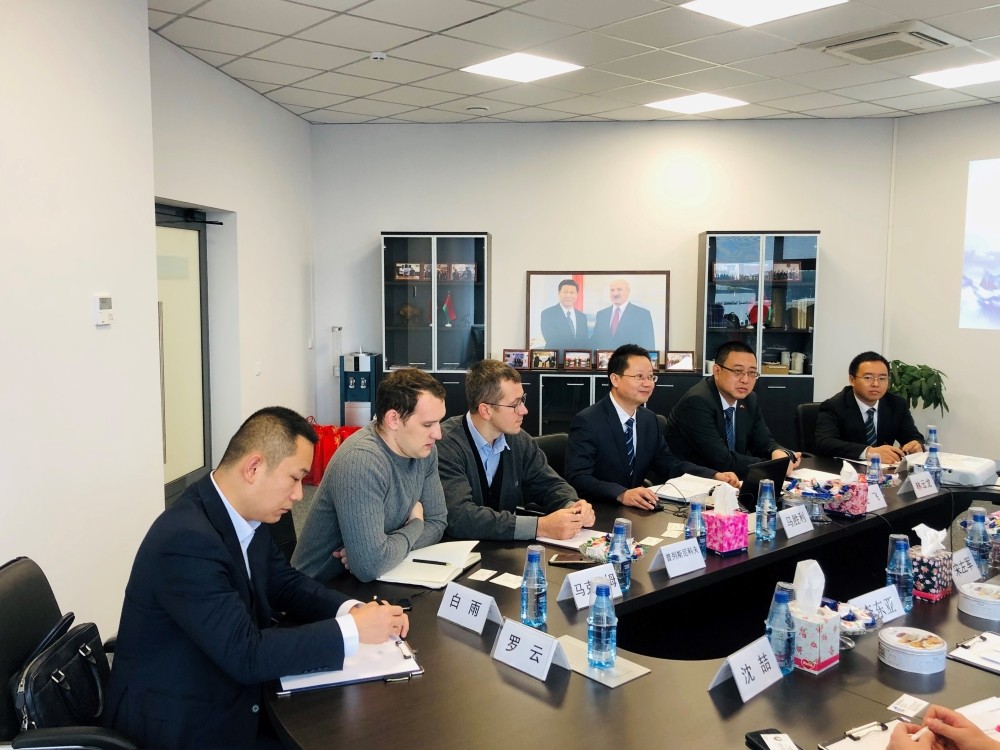 2019年10月12日上午,中國(guó)國(guó)家開發(fā)銀行香港分行副行長(zhǎng)宋左軍考察園區(qū),并與園區(qū)開發(fā)公司副總經(jīng)理任飛,中白航天高新技術(shù)產(chǎn)業(yè)研發(fā)中心有限公司(下稱“中白航天” )常務(wù)副總經(jīng)理馬勝利等領(lǐng)導(dǎo)舉行座談。