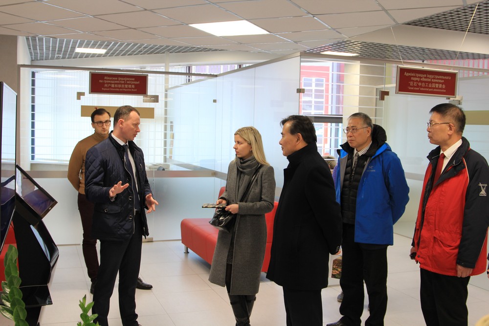 在園區(qū)規(guī)劃館,徐保民向徐逸波一行詳細(xì)介紹了園區(qū)發(fā)展歷程、招商引資、基礎(chǔ)設(shè)施、優(yōu)惠政策等情況。在園區(qū)“一站式”服務(wù)大廳,列謝諾克介紹了行政審批服務(wù)的相關(guān)情況,徐逸波在考察后,對(duì)園區(qū)的快速發(fā)展表示肯定。