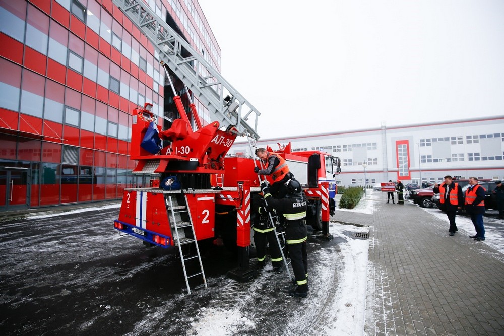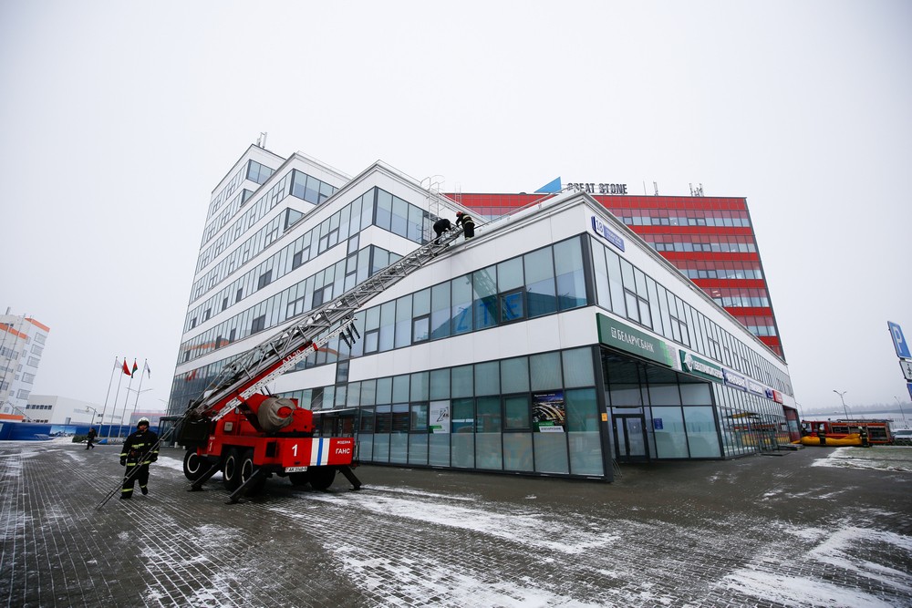該演習(xí)由中白工業(yè)園區(qū)開發(fā)股份有限公司(以下稱“開發(fā)公司”)舉辦。上午11:30火警信號響起之后,園區(qū)管委會、開發(fā)公司以及辦公樓所有租戶和企業(yè)約300名全體員工成功地撤離辦公樓。6分鐘之內(nèi),辦公樓全體員工安全在辦公樓停車場集合。消防隊(duì)員現(xiàn)場模擬場景展開傷員的營救工作。緊急情況部斯莫列維奇區(qū)分局局長指出,消防演習(xí)中辦公樓全體員工撤離迅速、工作協(xié)調(diào),并表示物業(yè)公司與消防部門成功聯(lián)合演習(xí)訓(xùn)練緊急情況中的突發(fā)事件,將更好的避免額外情況的發(fā)生。