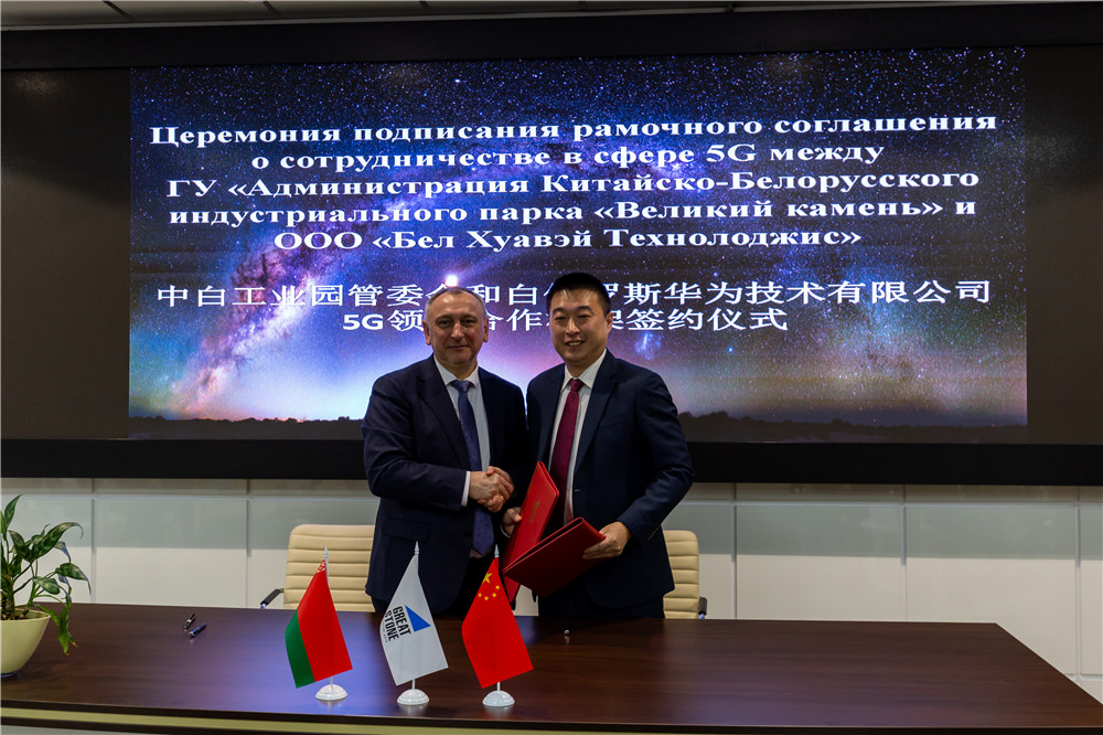 2020年2月25日下午,中白工業(yè)園管委會、開發(fā)公司與白俄羅斯通信與信息化部(以下簡稱“白俄通信部”)合作框架協(xié)議簽署儀式暨園區(qū)管委會與白俄羅斯華為技術(shù)有限公司5G領(lǐng)域合作框架協(xié)議簽約儀式在園區(qū)舉行。白俄通信部第一副部長涅斯捷羅維奇、中白工業(yè)園管委會主任亞羅申科、開發(fā)公司總經(jīng)理嚴(yán)剛、白俄華為公司總經(jīng)理王琛等領(lǐng)導(dǎo)出席了儀式并簽署了相關(guān)儀式。根據(jù)協(xié)議,標(biāo)志著中白工業(yè)園成為白俄羅斯首個5G應(yīng)用技術(shù)試驗(yàn)平臺,并由白俄華為公司提供5G設(shè)備用于園區(qū)及入園居民企業(yè)的5G技術(shù)的試驗(yàn)。