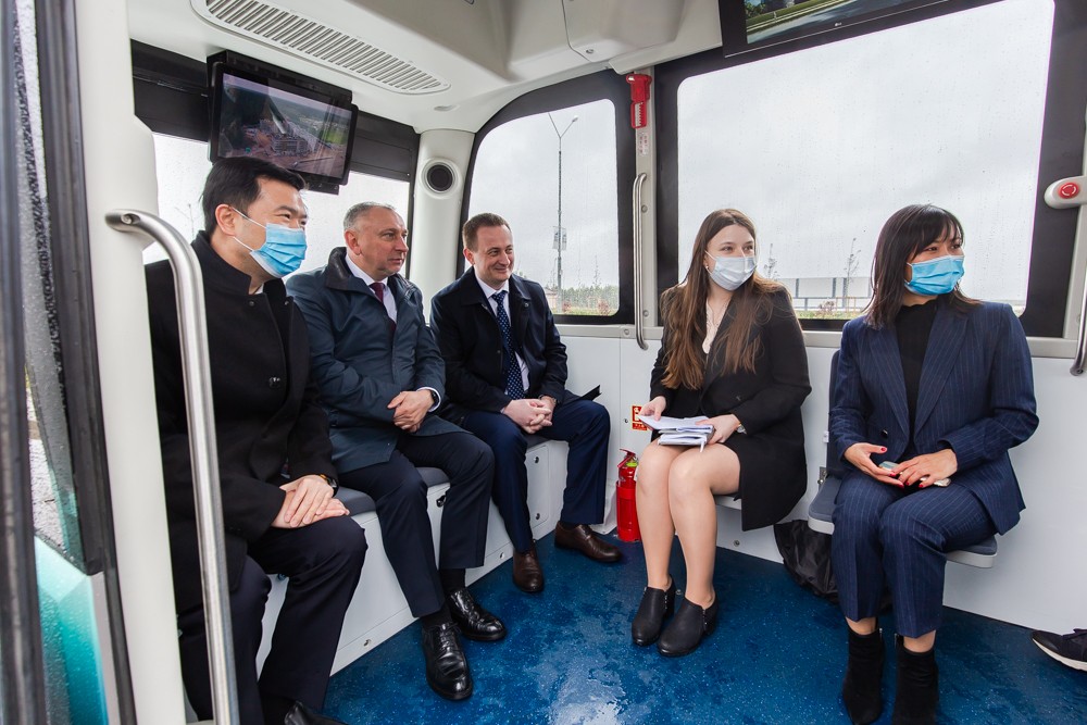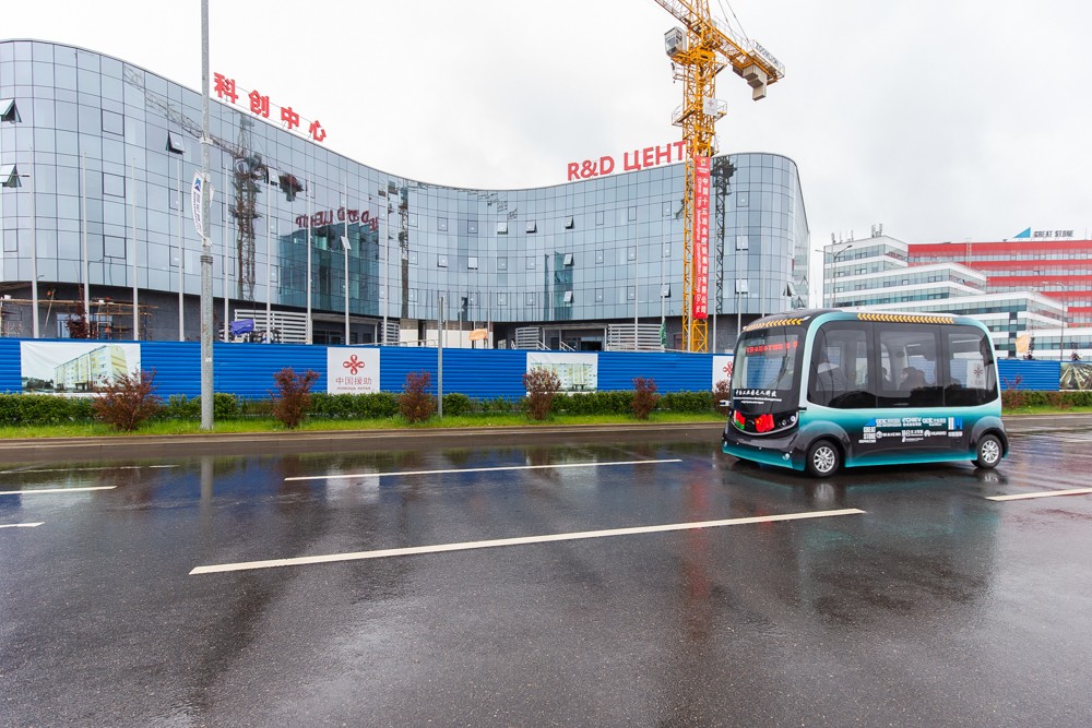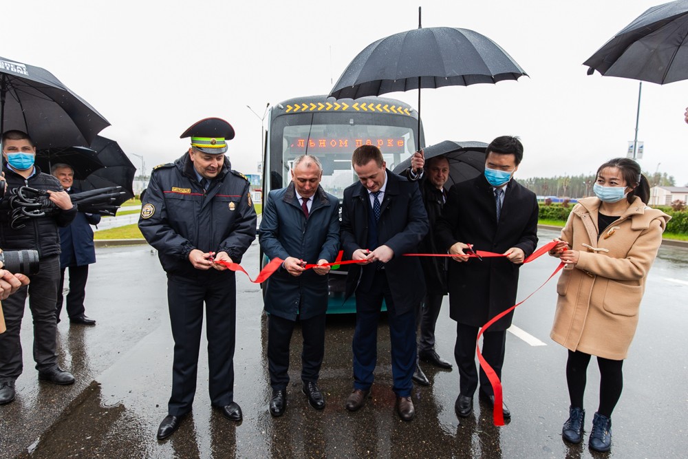 2020年5月12日,正值中國國家主席習近平和白俄羅斯總統(tǒng)盧卡申科視察中白工業(yè)園五周年之際,中白工業(yè)園無人車運行測試啟動儀式在辦公樓前舉行,白俄羅斯明斯克州執(zhí)委會主席圖爾欽、園區(qū)管委會主任亞羅申科、開發(fā)公司總經(jīng)理嚴剛、明斯克州交警局局長阿古里奇出席活動并剪彩,標志著園區(qū)開始無人車的封閉道路測試。