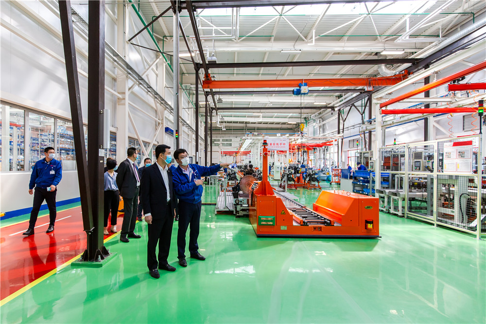 嚴(yán)剛先后調(diào)研了兩家企業(yè)的展示廳和生產(chǎn)車間,重點(diǎn)了解了疫情影響下入園企業(yè)的工程進(jìn)度和產(chǎn)品市場(chǎng)情況。中聯(lián)重科(白俄)總經(jīng)理袁勛介紹園區(qū)廠房的相關(guān)建設(shè)工作已步入驗(yàn)收階段,將力爭(zhēng)在今年10月投產(chǎn)。馬茲濰柴總經(jīng)理欒建偉向嚴(yán)剛介紹了投產(chǎn)兩年來(lái)公司采取的生產(chǎn)流程優(yōu)化和市場(chǎng)拓展措施,今年業(yè)績(jī)雖然受疫情影響,但園區(qū)產(chǎn)量和銷售額仍同比保持較快增長(zhǎng)。目前工廠已經(jīng)全面復(fù)工,生產(chǎn)正有條不紊開(kāi)展。