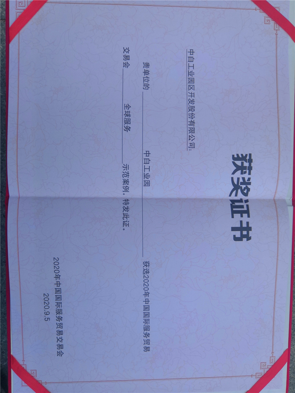 中白工業(yè)園榮獲2020年中國服貿(mào)會全球服務示范案例獎