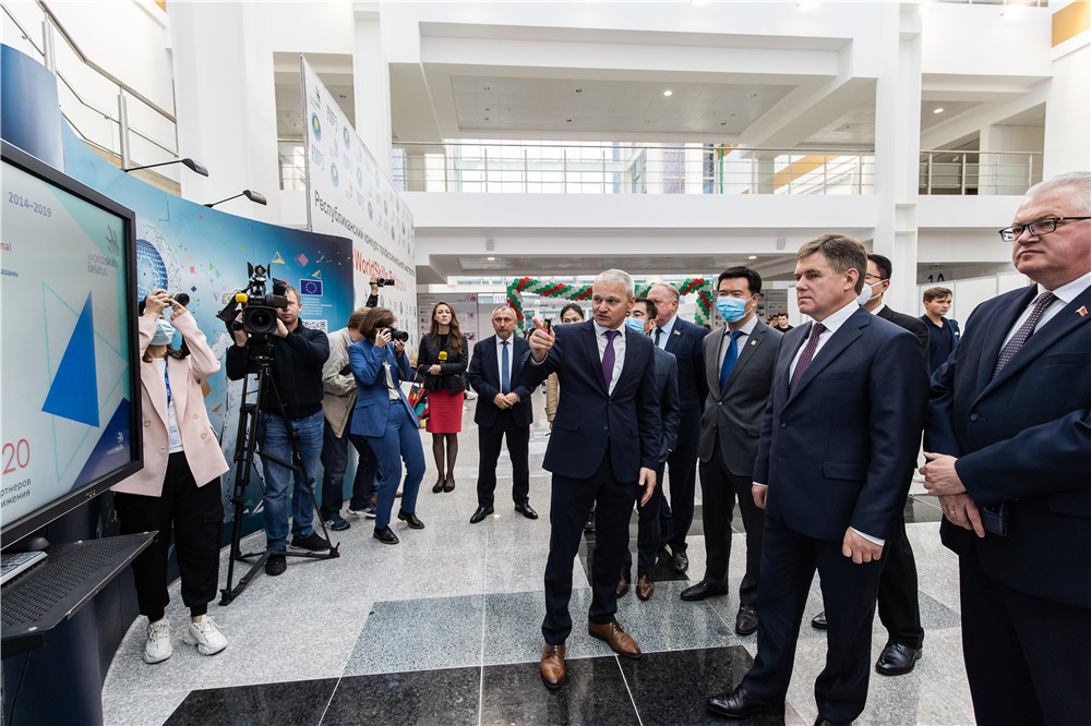 2020年9月15日-18日期間,第四屆白俄羅斯世界技能大賽在中白工業(yè)園招商局展示交易中心舉行。吸引了來自300多個白俄院校的選手參賽,每天入場人次超過2000人。 9月17日,白俄羅斯副總理伊戈里·佩特里申科視察本次大賽的舉辦工作,白俄羅斯國民會議共和國院教科文和社會發(fā)展常委會主席維克托爾·利斯科維奇、白俄羅斯教育部部長伊戈里·卡爾片科、中白工業(yè)園管委會主任亞羅申科、開發(fā)公司總經(jīng)理嚴剛等領導陪同視察。