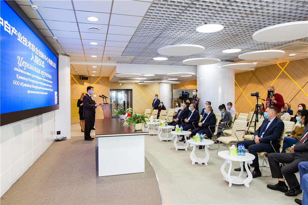 2020年9月25日,中白產(chǎn)業(yè)技術(shù)聯(lián)合創(chuàng)新中心(以下簡(jiǎn)稱“聯(lián)合創(chuàng)新中心”)入駐中白工業(yè)園儀式順利舉行,該企業(yè)成為園區(qū)第65家入園居民企業(yè)。中白工業(yè)園管委會(huì)主任亞羅申科向該中心負(fù)責(zé)人白俄羅斯國(guó)家科學(xué)院第一副主席齊日科頒發(fā)了入園居民企業(yè)證書(shū),中白工業(yè)園區(qū)開(kāi)發(fā)公司總經(jīng)理嚴(yán)剛等領(lǐng)導(dǎo)出席儀式。