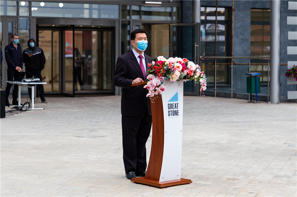 升旗儀式上,全體員工莊嚴肅立,面對國旗行注目禮,伴隨慷慨昂揚的節(jié)奏高唱國歌,抒發(fā)身處異國他鄉(xiāng)的中華兒女對祖國的無限熱愛與祝福。開發(fā)公司總經(jīng)理嚴剛向參加儀式的中資企業(yè)員工致以節(jié)日的問候,他表示,今天是中華人民共和國成立71周年華誕,我們在此祝福祖國繁榮昌盛,國泰民安。今年受疫情影響,全球經(jīng)濟低迷,園區(qū)所有中國企業(yè)和員工在疫情嚴峻的情況下,仍然堅持防疫抗疫工作,取得了良好成效。隨著居民企業(yè)開始復(fù)工復(fù)產(chǎn)、動工建設(shè)等工作,物流園業(yè)績實現(xiàn)增長,馬茲濰柴實現(xiàn)銷量與產(chǎn)量雙增長,超頻三加快恢復(fù)市場份額,中聯(lián)重科已進入調(diào)試階段,各中資居民企業(yè)和員工在逆境中展現(xiàn)出敢于擔(dān)當和奉獻的抗疫精神,感謝各位的辛勤付出。