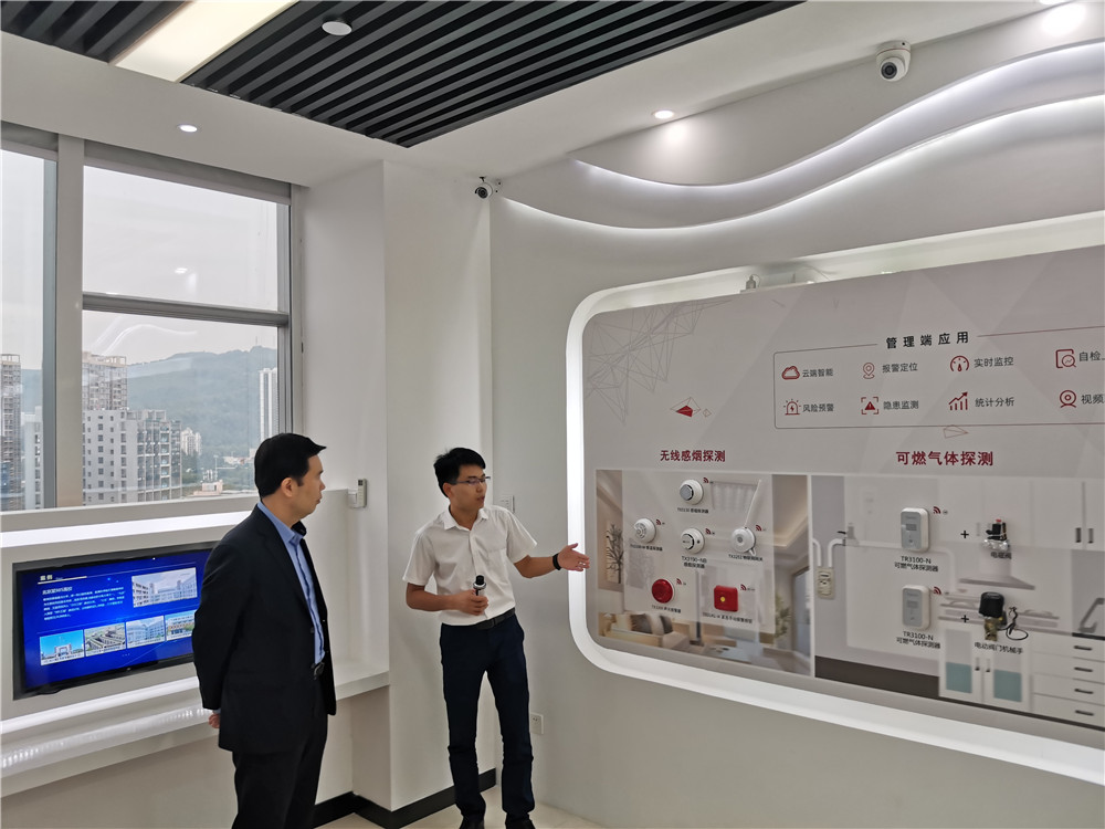 宋佳城歡迎嚴(yán)剛一行到訪,他介紹了泰和安的基本情況。泰和安成立于2008年,是一家專注于物聯(lián)網(wǎng)消防產(chǎn)品與消防設(shè)備研發(fā)、制造、銷售、服務(wù)為一體的國家級高新技術(shù)企業(yè),在全國共有7個(gè)營銷大區(qū)、300余家銷售服務(wù)機(jī)構(gòu)、覆蓋全國280多個(gè)城市,在英國、新加坡、阿聯(lián)酋等國家開設(shè)有多個(gè)海外業(yè)務(wù)公司,年?duì)I銷額超10億人民幣。