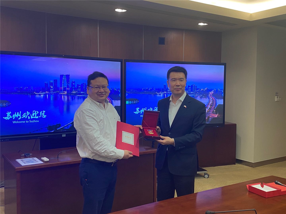 最后,嚴(yán)剛代表中白工業(yè)園管委會和開發(fā)公司向蘇州工業(yè)園頒授“巨石中白工業(yè)園開發(fā)創(chuàng)業(yè)5周年特別致謝狀”,感謝蘇州工業(yè)園在中白工業(yè)園發(fā)展中給予的模范引領(lǐng)和支持。