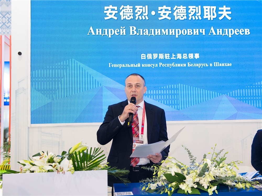 11月5日,中白工業(yè)園開發(fā)公司攜三家入園企業(yè)在進博會服務(wù)貿(mào)易館正式舉行開館儀式,向全世界參展商及觀眾展示園區(qū)建設(shè)成果、投資潛力、發(fā)展前景及入園企業(yè)項目的沙盤、產(chǎn)品及服務(wù)。白俄羅斯共和國駐上海總領(lǐng)事安德烈耶夫、中國商務(wù)部歐亞司巡視員楊修敏、國機集團董事長張曉侖、招商局集團副總經(jīng)理王宏、中白工業(yè)園區(qū)開發(fā)股份有限公司董事長羅艷及總經(jīng)理嚴剛蒞臨開館儀式。
