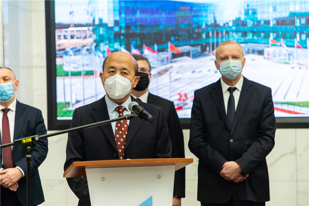 嚴剛代表開發(fā)公司向為園區(qū)建設(shè)開發(fā)做出貢獻的所有參與單位和參與者們致以崇高的敬意和衷心的感謝,隨后他表示:“今年恰逢園區(qū)開發(fā)建設(shè)5周年暨兩國元首視察園區(qū)5周年的紀(jì)念,中白工業(yè)園今天所取得的建設(shè)成果,傾注了兩國元首的親切關(guān)懷和中白政府的大力支持,也傾注了股東單位、入園企業(yè)和園區(qū)同事們的不懈努力。中白工業(yè)園的發(fā)展將在“產(chǎn)業(yè)化、國際化、數(shù)字化、生態(tài)化”的目標(biāo)基礎(chǔ)上克服疫情帶來的階段性困難,積極完善中白兩國經(jīng)貿(mào)合作和科技合作的平臺功能,為把中白工業(yè)園合作建設(shè)成為絲綢之路經(jīng)濟帶上的明珠項目和中白兩國互利合作的典范而繼續(xù)努力。