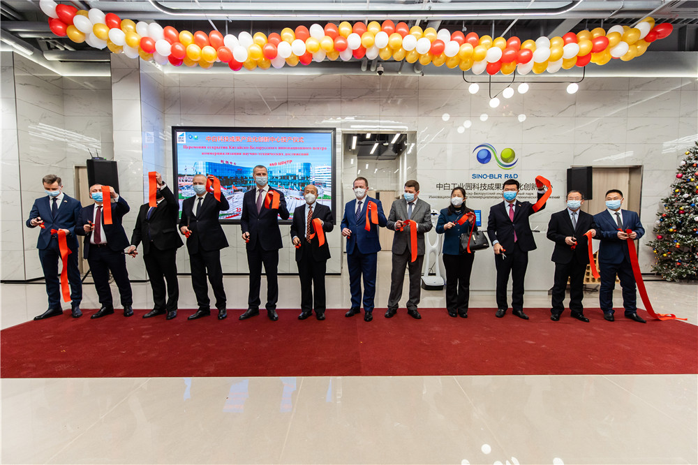 2020年12月23日,冬季的明斯克銀裝素裹,中白工業(yè)園內(nèi)充滿喜慶的氣氛。由中國援建的中白科技成果產(chǎn)業(yè)化創(chuàng)新中心(以下簡稱:科創(chuàng)中心)投產(chǎn)儀式暨中白工業(yè)園開發(fā)建設(shè)五周年頒獎儀式在嚴格的防疫措施下隆重舉行。白俄羅斯總統(tǒng)辦公廳副主任德米特里·克魯托伊,中華人民共和國駐白俄羅斯共和國特命全權(quán)大使謝小用,明斯克州執(zhí)委會主席亞歷山大·圖爾欽、白俄羅斯國家科技委員會主席亞歷山大·舒米林、白俄羅斯國家科學(xué)院主席弗拉基米爾·古薩科夫、中國駐白俄羅斯大使館經(jīng)濟商務(wù)參贊趙秋艷、白俄羅斯經(jīng)濟部副部長謝爾蓋·米強斯基、園區(qū)管委會主任雅羅申科、開發(fā)公司總經(jīng)理嚴剛等領(lǐng)導(dǎo)出席本次活動共同為科創(chuàng)中心投產(chǎn)剪彩。