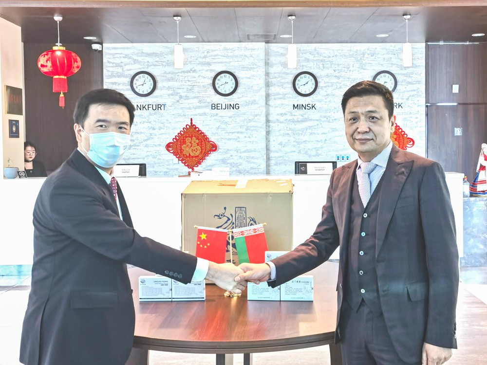 2020年2月26日,中白工業(yè)園區(qū)開發(fā)公司總經(jīng)理嚴(yán)剛會見金臺文院院長蔡傳慶,會后,蔡傳慶院長向中白工業(yè)園區(qū)開發(fā)公司捐贈了一批靈蘭疫清抗疫中成藥。