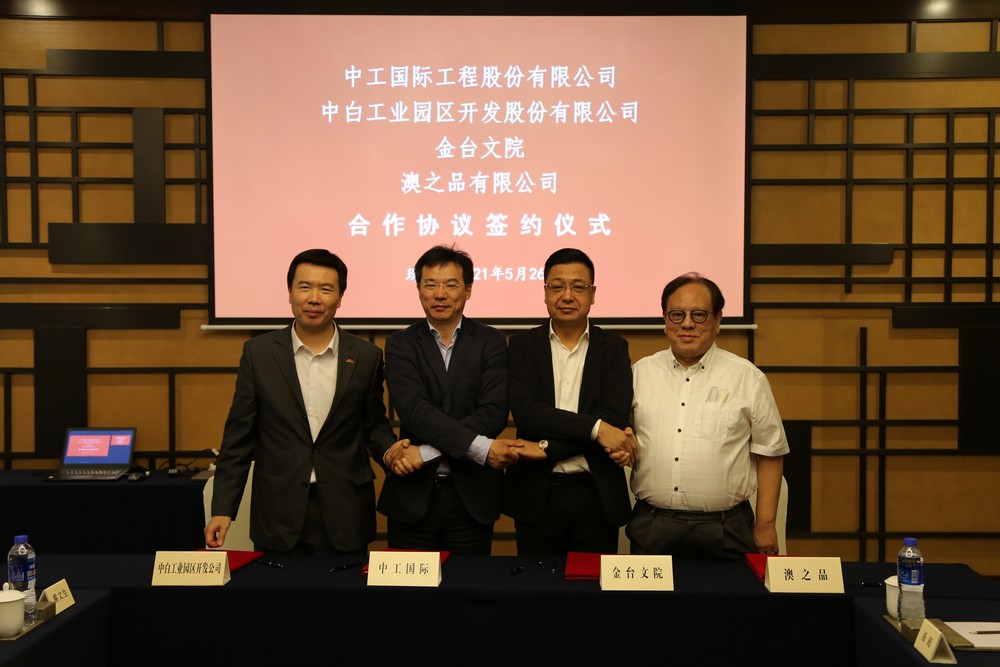 2021年5月26日下午5點(diǎn),中白工業(yè)園在珠海與中工國際、金臺(tái)文院和澳之品有限公司舉辦了合作協(xié)議簽約儀式。