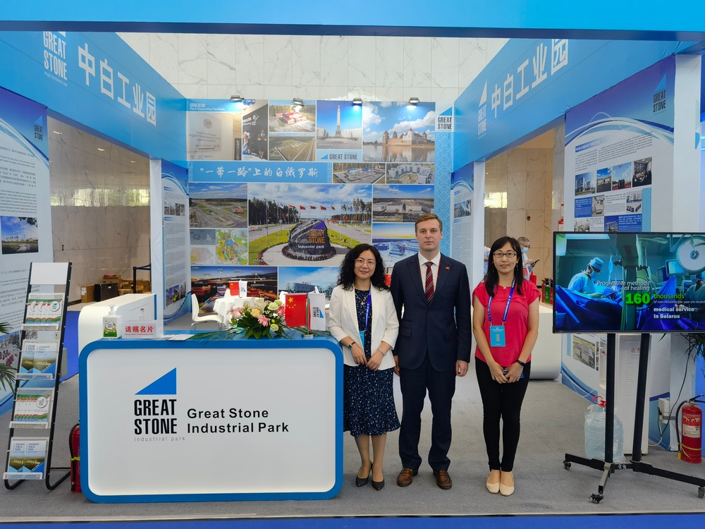 中白工業(yè)園應(yīng)邀參會,設(shè)立54平米特裝展臺,聯(lián)合入園企業(yè)一拖白俄羅斯技術(shù)有限公司、國機火炬園、法士特馬茲有限責(zé)任公司、成都新筑絲路發(fā)展有限公司、招商局中白商貿(mào)物流園、中聯(lián)重科白俄羅斯有限責(zé)任公司、中白航天高新技術(shù)產(chǎn)業(yè)研發(fā)中心有限公司、馬茲濰柴有限公司聯(lián)合參展。白俄羅斯駐重慶總領(lǐng)事館總領(lǐng)事葉·德米特里參觀了中白工業(yè)園展臺,園區(qū)開發(fā)公司中國部總經(jīng)理李瀟瀟向德米特里總領(lǐng)事介紹了園區(qū)建設(shè)及招商進展情況。中國部總經(jīng)理助理史俊等參加此次展會。