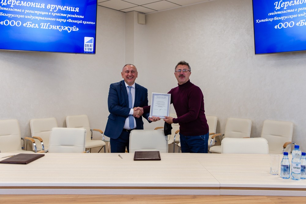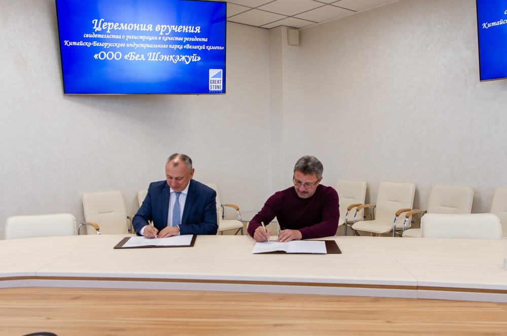 2021年8月30日上午,勝科銳公司成為中白工業(yè)園第74家居民企業(yè),園區(qū)管委會主任亞羅申科與勝科銳公司負責人簽署了入園協(xié)議,并頒發(fā)了居民企業(yè)證書,開發(fā)公司總經(jīng)理嚴剛、第一副總經(jīng)理卡羅杰耶夫、副總經(jīng)理維杰霍夫斯基、任飛參加了本次儀式。
