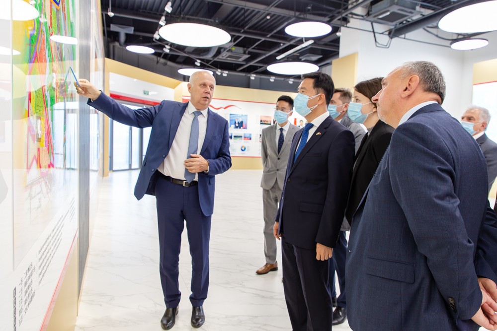 考察期間,西瓦克副總理詳細了解了引入園區(qū)物流區(qū)的鐵路支線的籌建情況及M2公路的交叉點規(guī)劃設計情況。在參觀園區(qū)規(guī)劃展示館期間,西瓦克副總理饒有興致地聽取了亞羅申科主任和嚴剛總經(jīng)理關于園區(qū)規(guī)劃發(fā)展歷程、居民企業(yè)發(fā)展及園區(qū)項目推進的相關匯報,在探討進一步提高園區(qū)與周邊市區(qū)通行便利性時,西瓦克副總理親自介紹了白俄政府計劃開通的與園區(qū)相關的公共交通線路。