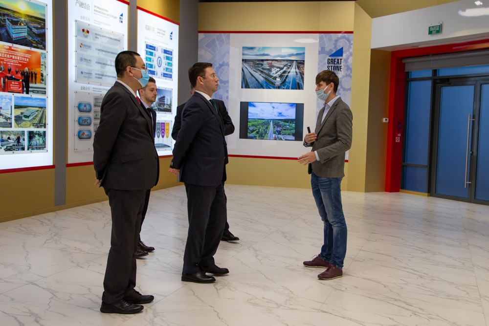 12月15日,俄羅斯鐵路集裝箱運(yùn)輸公司總裁伊蘇林·亞歷山大率代表團(tuán)考察中白工業(yè)園,園區(qū)開發(fā)公司副總經(jīng)理任飛陪同考察。