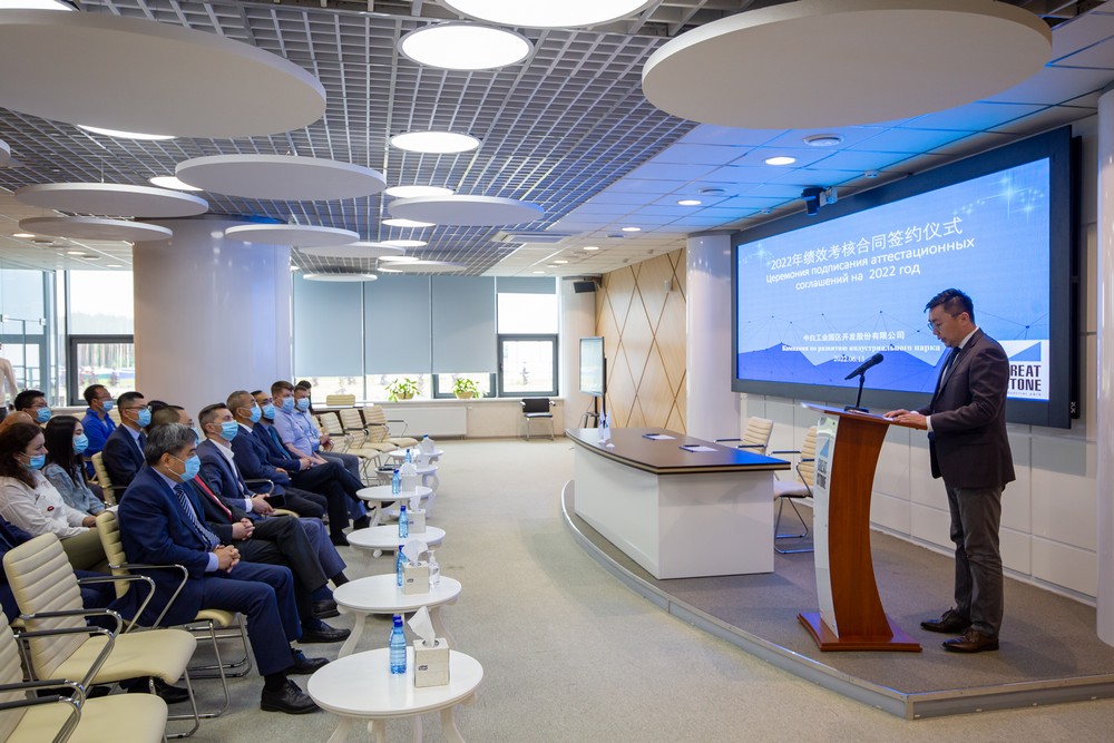 6月13日,中白工業(yè)園區(qū)開發(fā)公司舉行全資子公司績效考核合同簽約儀式,開發(fā)公司總經(jīng)理李鐘漢出席儀式并致辭,公司第一副總經(jīng)理卡羅杰夫分別與水務(wù)公司總經(jīng)理休爾科和物業(yè)公司總經(jīng)理若洛夫簽訂了績效考核合同,總經(jīng)理助理吳鵬主持簽約儀式。
