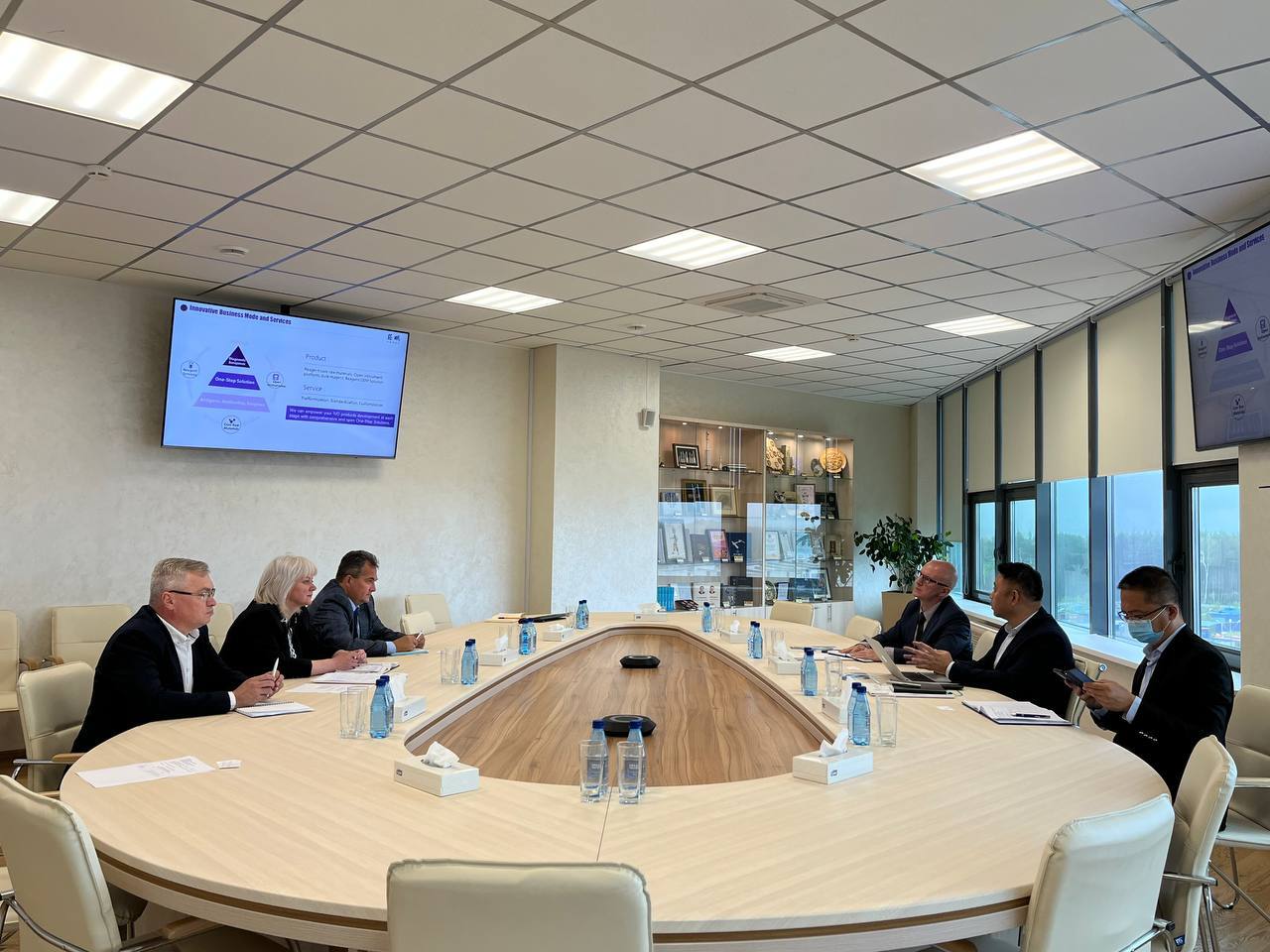 7 月 12 日,中國菲鵬生物股份有限公司國際區(qū)域銷售總監(jiān)李華考察中白工業(yè)園,菲鵬生物俄羅斯和獨(dú)聯(lián)體銷售總監(jiān)安東·莫夏金、園區(qū)管委會(huì)主任切爾卡索娃陪同考察。