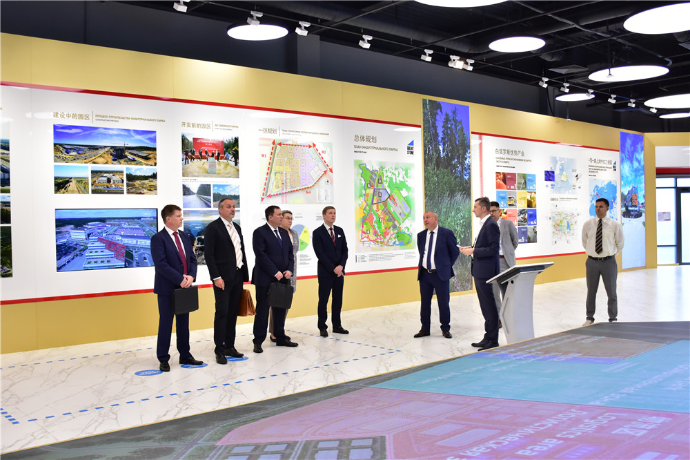 在園區(qū)規(guī)劃館,亞羅申科向先科大使一行介紹了園區(qū)的發(fā)展建設(shè)情況、居民企業(yè)發(fā)展情況,并詳細(xì)介紹了園區(qū)下一階段的的發(fā)展目標(biāo)和方向,先科大使對(duì)園區(qū)近幾年的發(fā)展表示肯定,并表示將繼續(xù)進(jìn)一步通過(guò)駐華使館加強(qiáng)吸引中國(guó)企業(yè)赴園區(qū)考察投資。