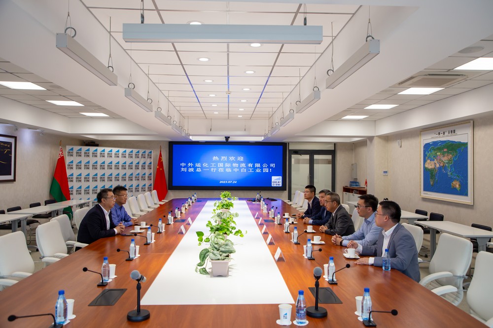 2023年7月24日下午,中外運(yùn)化工國際物流有限公司總經(jīng)理劉波一行考察中白工業(yè)園,與中白工業(yè)園區(qū)開發(fā)公司總經(jīng)理李鐘漢舉行座談。