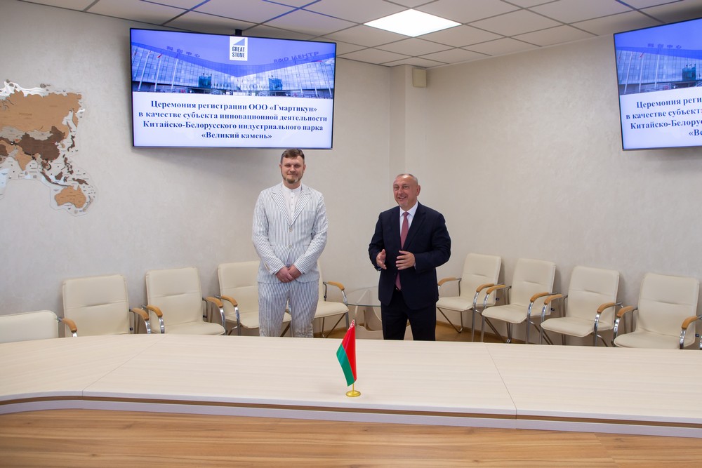 2023年7月26日,中白工業(yè)園舉行初創(chuàng)企業(yè)入園儀式,中白工業(yè)園管委會(huì)主任亞羅申科向白俄羅斯Gmartikun有限公司總經(jīng)理茨布莉斯基頒發(fā)初創(chuàng)企業(yè)入園證書,開發(fā)公司總經(jīng)理李鐘漢參加本次活動(dòng)。