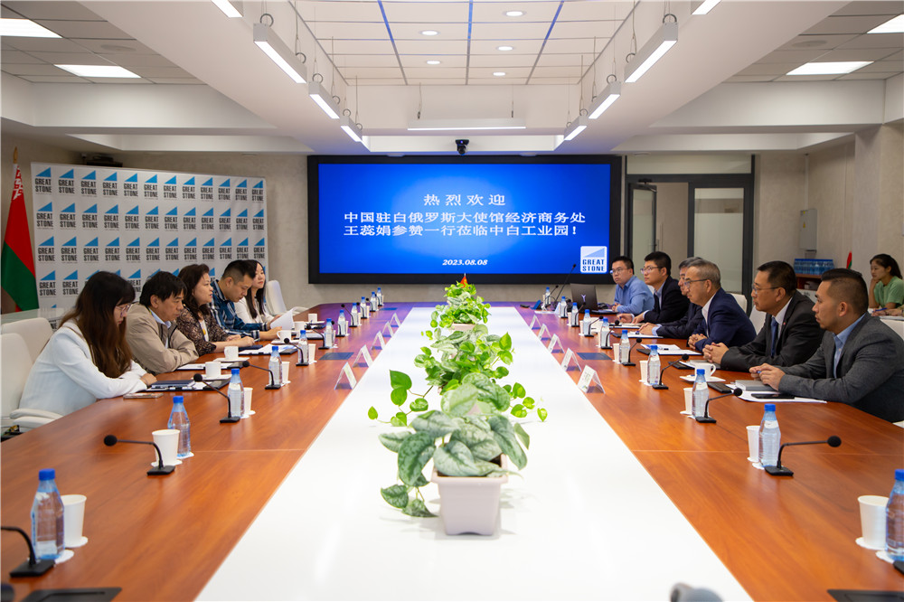 會(huì)談上,李鐘漢總經(jīng)理向王蕊娟參贊表示歡迎,并就使館長(zhǎng)期以來關(guān)注和支持園區(qū)發(fā)展表示衷心感謝。隨后,他詳細(xì)介紹了園區(qū)近兩年圍繞公司核心戰(zhàn)略目標(biāo)所做的工作以及園區(qū)在招商引資及企業(yè)運(yùn)營(yíng)方面所取得的進(jìn)展。王蕊娟參贊對(duì)園區(qū)招商引資及新興業(yè)務(wù)的發(fā)展表示肯定,她表示,園區(qū)開發(fā)公司作為中白工業(yè)園的運(yùn)營(yíng)機(jī)構(gòu),不僅承擔(dān)自身企業(yè)發(fā)展的使命,也肩負(fù)著推動(dòng)園區(qū)共同發(fā)展的使命,希望開發(fā)公司能找準(zhǔn)園區(qū)定位,繼續(xù)加強(qiáng)入園企業(yè)服務(wù),并主動(dòng)為企業(yè)調(diào)研和尋找市場(chǎng),推動(dòng)園區(qū)的高質(zhì)量發(fā)展。
