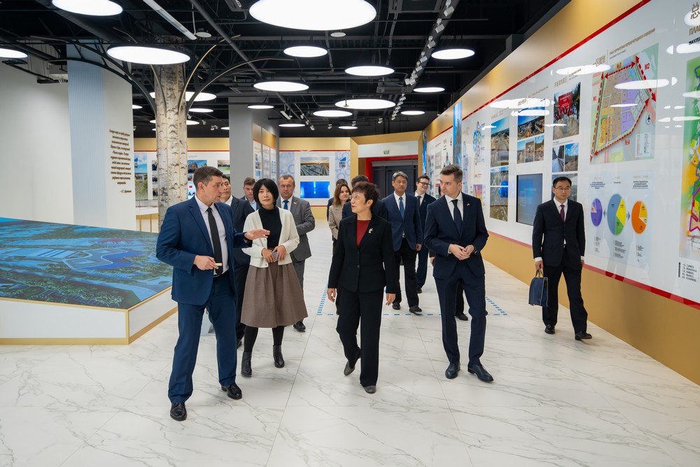 在園區(qū)規(guī)劃館,亞季莫夫向呂偉紅副署長(zhǎng)介紹了園區(qū)的發(fā)展歷程歷程、管理架構(gòu)、優(yōu)惠政策及居民企業(yè)業(yè)務(wù)發(fā)展方向,卡羅捷耶夫向其介紹了園區(qū)的總體規(guī)劃、基礎(chǔ)設(shè)施及配套設(shè)施建設(shè)等相關(guān)內(nèi)容。