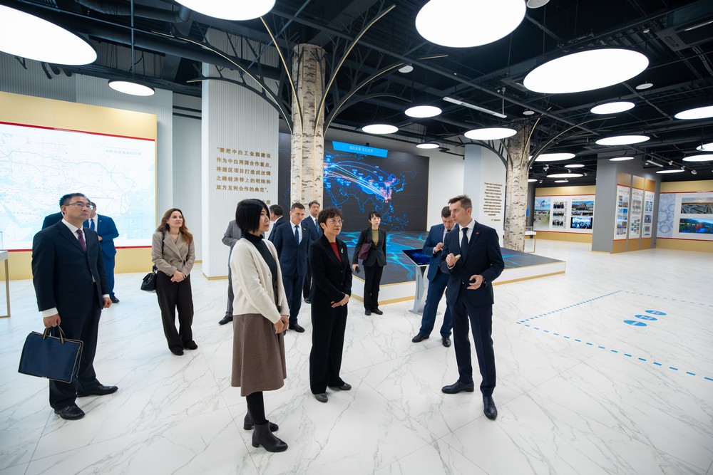 2023年10月25日下午,中國(guó)海關(guān)總署副署長(zhǎng)呂偉紅考察中白工業(yè)園,白俄羅斯農(nóng)業(yè)部部長(zhǎng)巴爾托社、副部長(zhǎng)斯迷莉金、白俄羅斯海關(guān)委員會(huì)第一副主席瓦莉葉夫、白俄羅斯海關(guān)公司代理總經(jīng)理斯卡奇闊夫斯基、園區(qū)管委會(huì)第一副主任亞季莫夫、開(kāi)發(fā)公司第一副總經(jīng)理卡羅捷耶夫陪同考察。