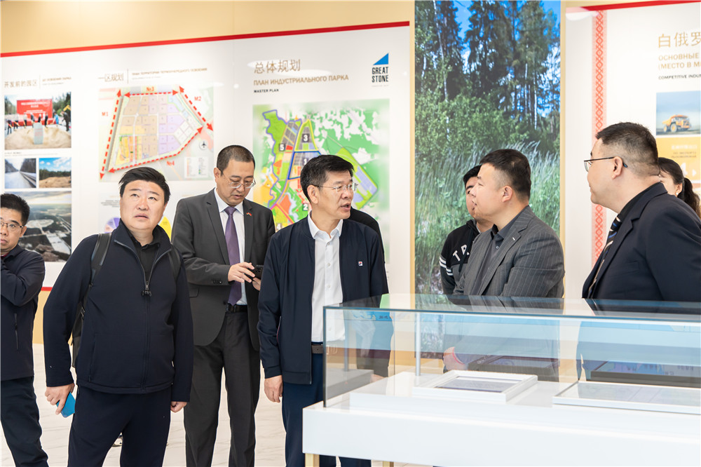 在園區(qū)規(guī)劃館,園區(qū)開發(fā)公司副總經理任飛詳細介紹了園區(qū)的管理架構、規(guī)劃布局、優(yōu)惠政策和招商引資等內容,并介紹了園區(qū)居民企業(yè)向北國際物流有限公司的相關情況。黃志強常務副主席對園區(qū)的發(fā)展表示肯定,并表示,內蒙古將繼續(xù)研究和支持更多企業(yè)在入駐中白工業(yè)園、中歐班列、公路運輸的發(fā)展,共同推動“一帶一路”的發(fā)展。黃志強常務副主席一行還考察了國機火炬園、招商局商貿物流園等居民企業(yè)項目。