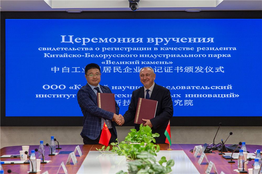 9月14日,山東省委常委、組織部部長王宇燕考察中白工業(yè)園,與園區(qū)管委會主任亞羅申科、白俄羅斯國家科學(xué)院第一副主席齊日科、開發(fā)公司總經(jīng)理李鐘漢舉行會談,并共同見證山東省科學(xué)院白俄羅斯研究中心簽約成為園區(qū)居民企業(yè)。