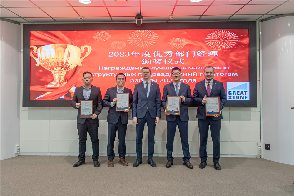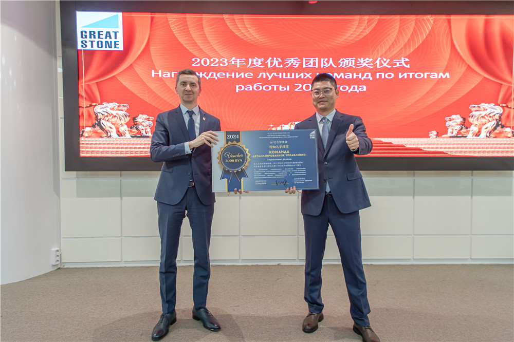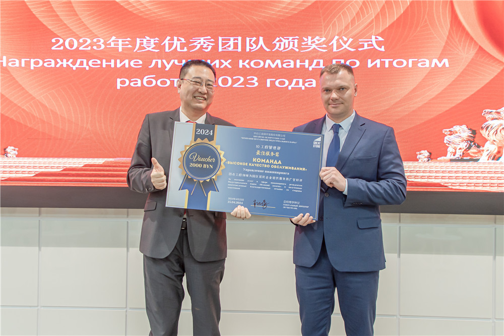 2024年4月25日,中白工業(yè)園區(qū)開(kāi)發(fā)公司2023年度評(píng)優(yōu)表彰儀式暨2024年度績(jī)效考核合同簽約儀式在二樓多功能廳舉行??偨?jīng)理李鐘漢、第一副總經(jīng)理卡羅捷耶夫、副總經(jīng)理任飛、副總經(jīng)理杰特卡夫、副總經(jīng)理吳鵬等領(lǐng)導(dǎo)出席本次活動(dòng)。