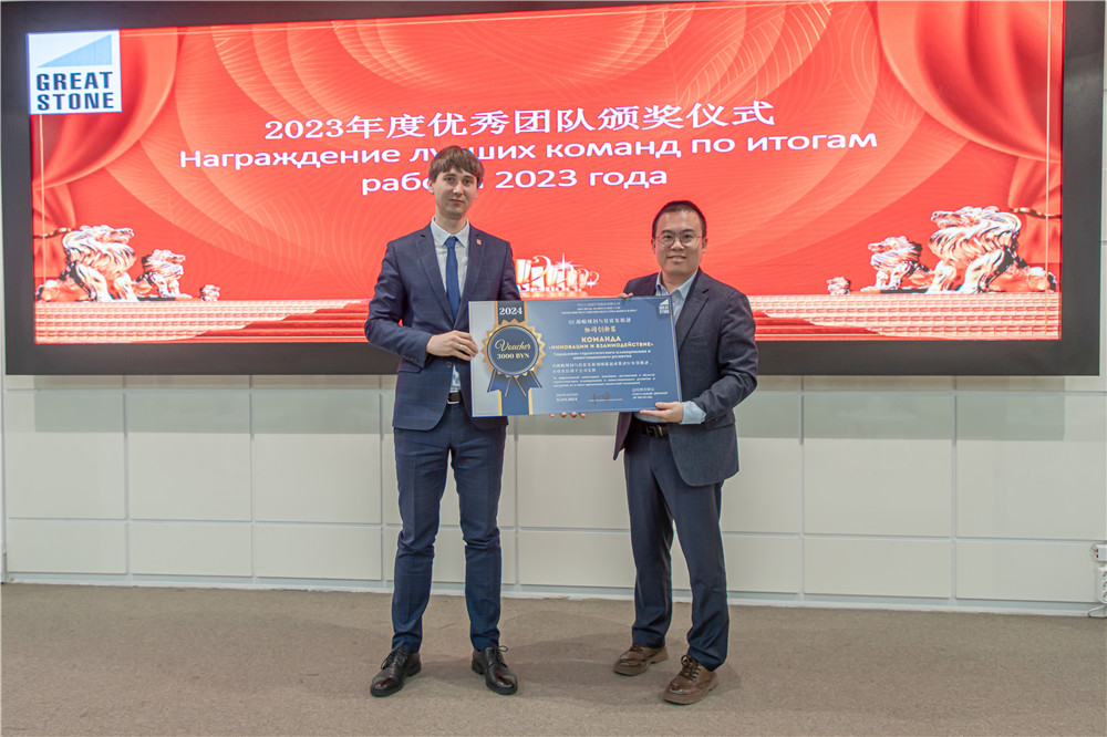 表彰儀式上,李鐘漢總經(jīng)理與開(kāi)發(fā)公司高管向5個(gè)團(tuán)隊(duì)頒發(fā)了優(yōu)秀團(tuán)隊(duì)獎(jiǎng),向4位部門經(jīng)理頒發(fā)了優(yōu)秀經(jīng)理獎(jiǎng),向11名員工頒發(fā)了優(yōu)秀員工獎(jiǎng)。在隨后舉行的2023年度績(jī)效考核合同簽約儀式上,李鐘漢總經(jīng)理與公司高管簽訂了績(jī)效考核合同,公司管理層分別與分管部門經(jīng)理簽訂了績(jī)效考核合同。