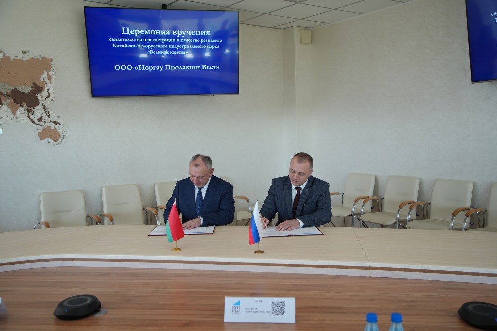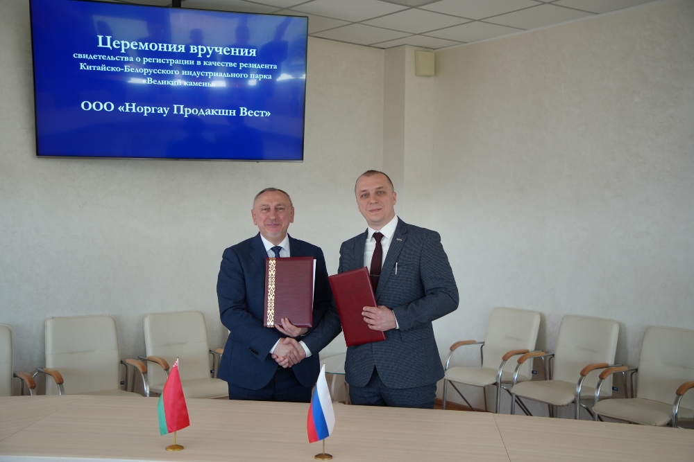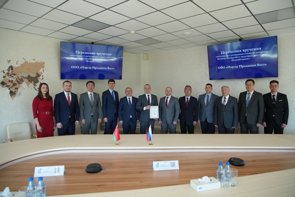 2024年5月8日,諾爾高生產(chǎn)西部有限公司(ООО ?Норгау Продакшн Вест?)注冊(cè)成為園區(qū)居民企業(yè),園區(qū)管委會(huì)主任亞羅申科向企業(yè)的負(fù)責(zé)人頒發(fā)入園企業(yè)證書,開發(fā)公司總經(jīng)理李鐘漢、管委會(huì)第一副主任亞季莫夫等出席入園儀式。