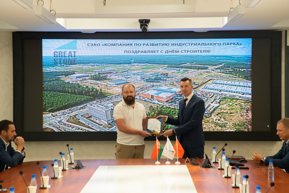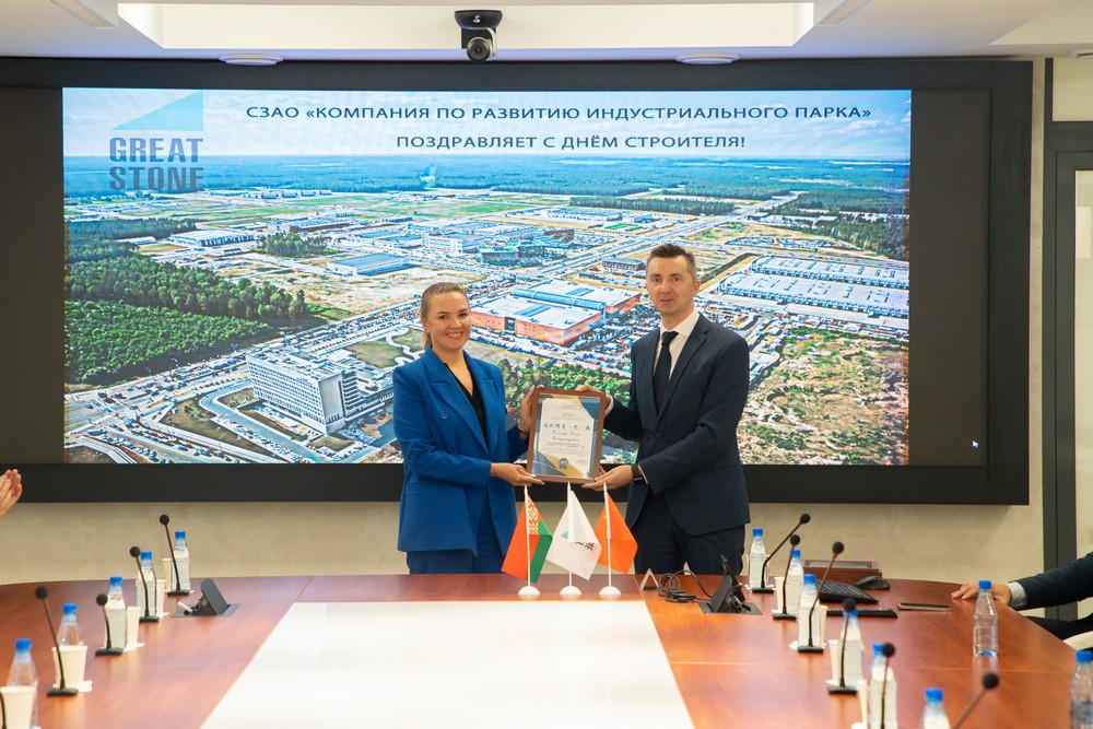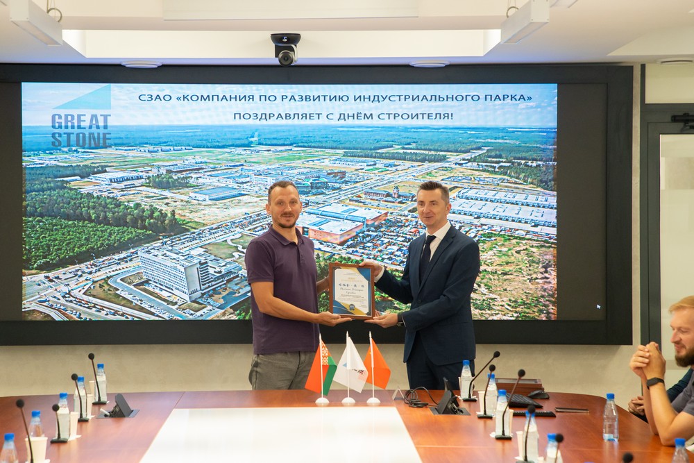 儀式上,卡羅捷耶夫向八個規(guī)劃部和工程部的員工頒發(fā)了感謝狀,以表彰在職業(yè)活動中取得的成就以及為建設(shè)中白巨石工業(yè)園區(qū)所做的巨大貢獻。