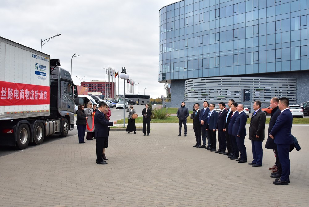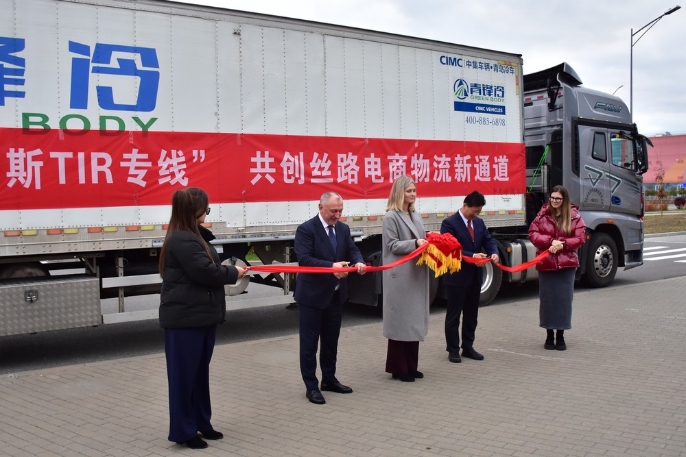 孟慶斌還參加了白俄羅斯產品運送到青島的集裝箱卡車的儀式。